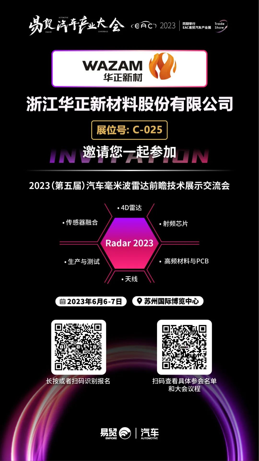 展會邀請|華正新材邀您參加2023第五屆汽車毫米波雷達前瞻技術展示交流會