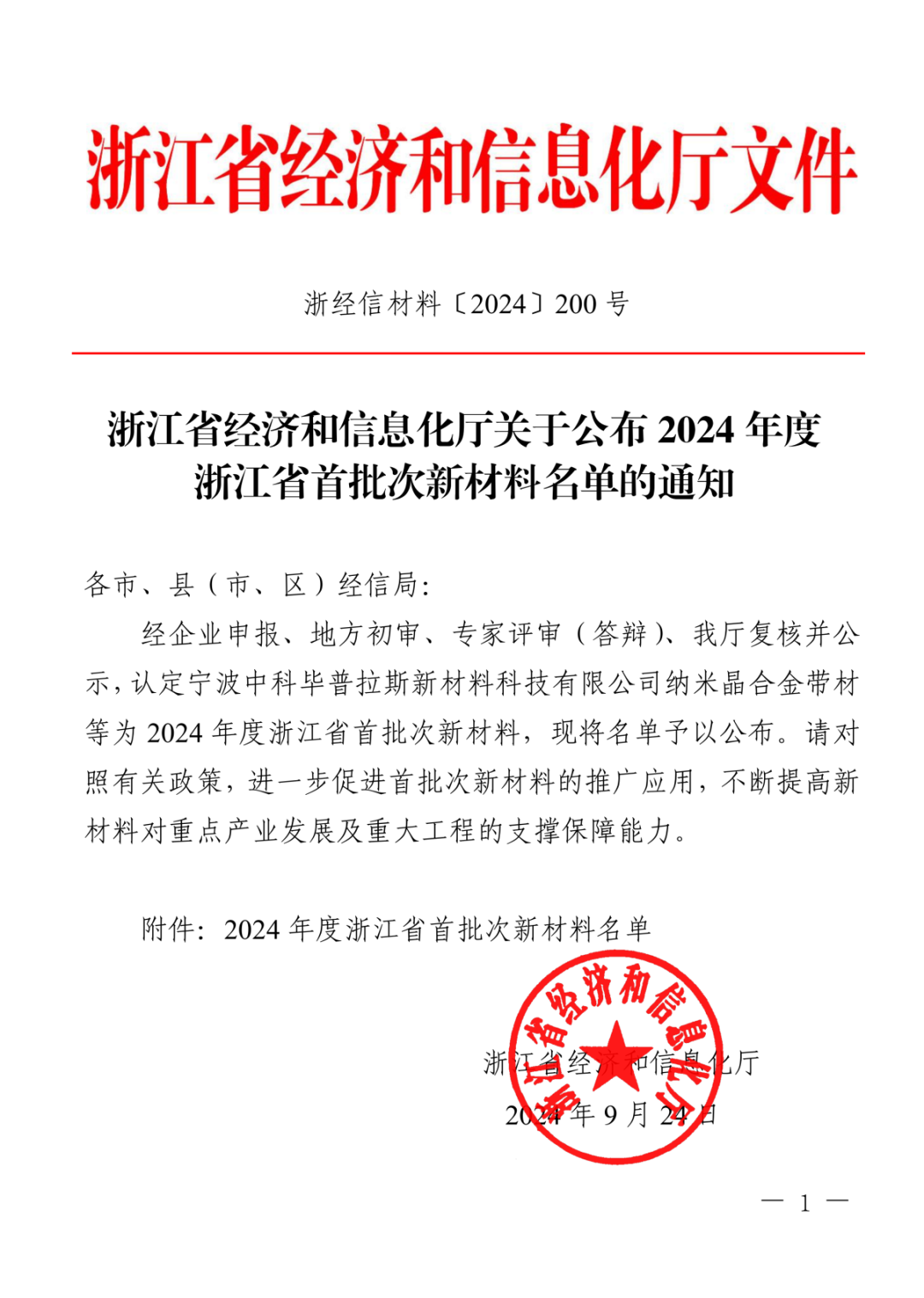近日,浙江省經(jīng)濟和信息化廳公布了《2024年度浙江省首批次新材料認定結(jié)果》名單